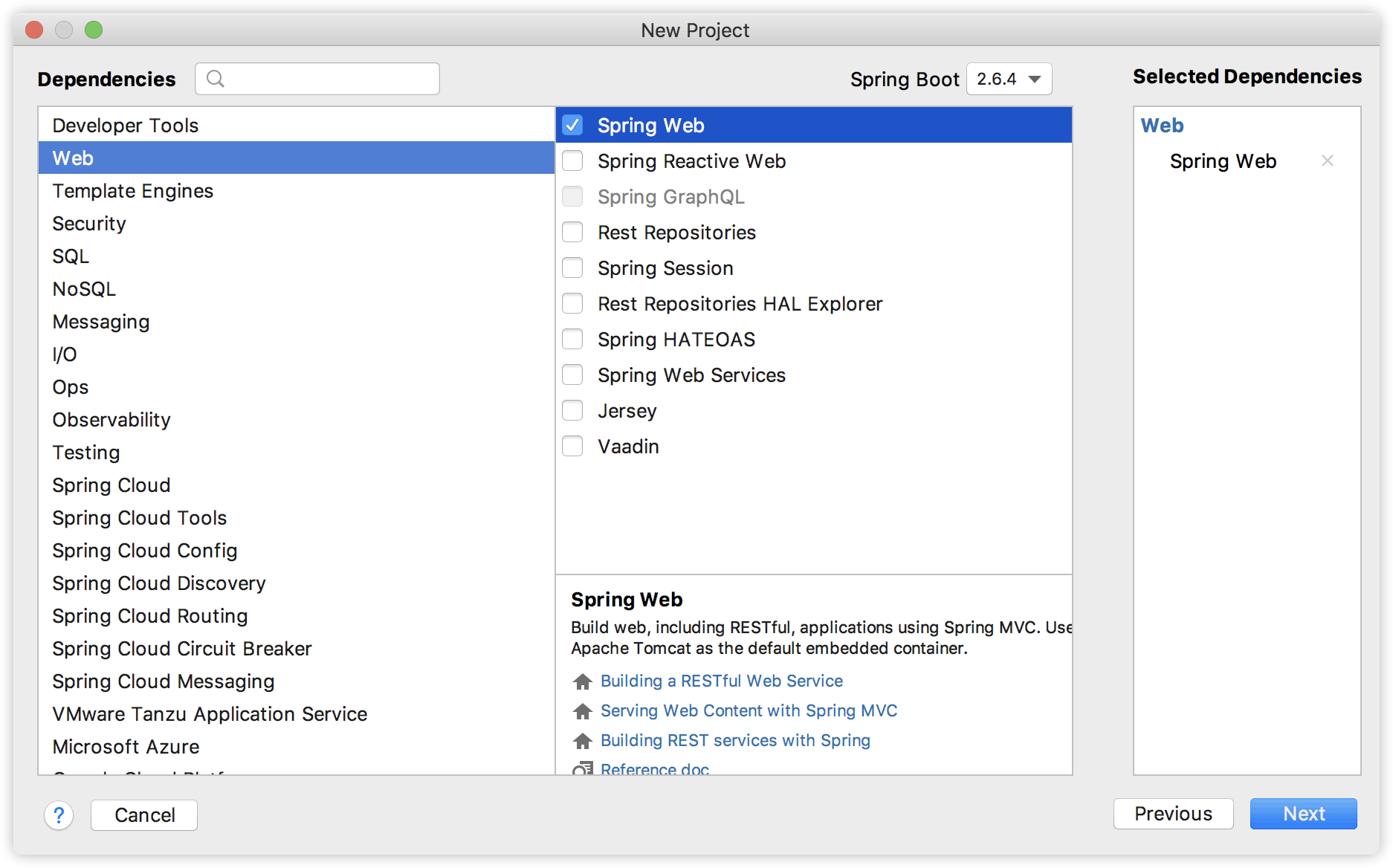 首先创建一个 SpringBoot 项目,引入 Web 依赖,如下: