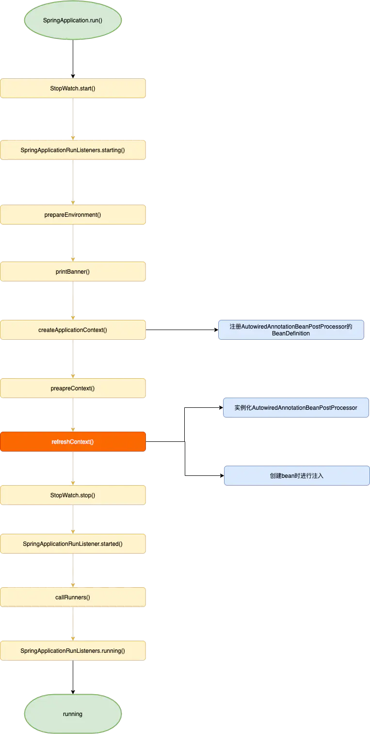 AutowiredAnnotationBeanPostProcessor(以下简称AutowiredProcessor)间接实现了InstantiationAwareBeanPostProcessor接口.通过postProcessProperties(...)完成@Autowired的注入,本文将按照下图流程梳理AutowiredProcessor的生效逻辑.