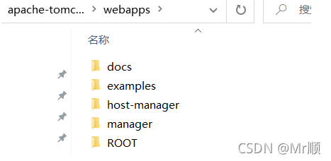 webapps目录用来存放应用程序,当tomcat启动时会去加载webapps目录下的应用程序。可以以文件夹、war包的形式发布应用。