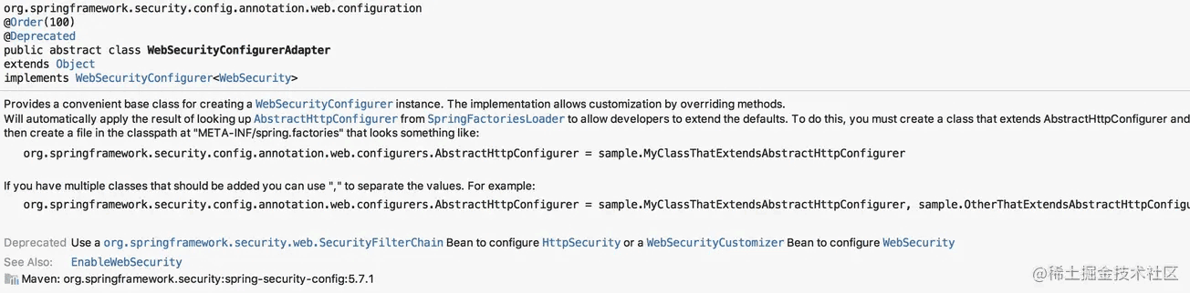 现在在 WebSecurityConfigurerAdapter 的注释中,人家已经把意思说的很明白了: