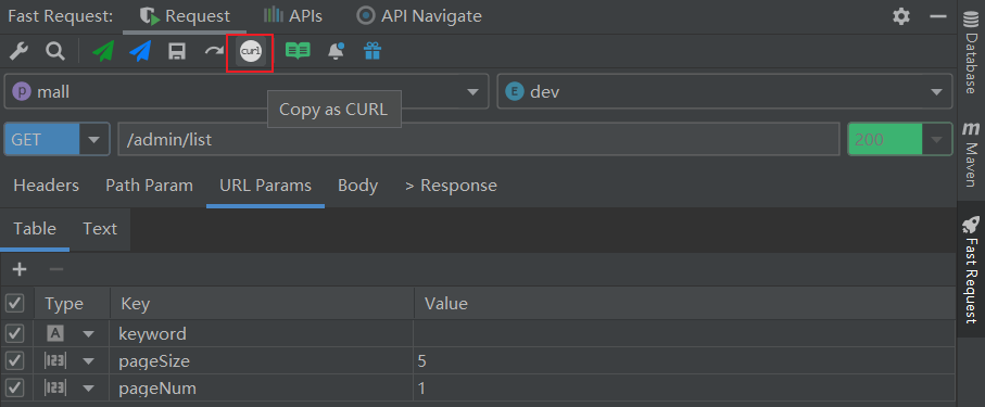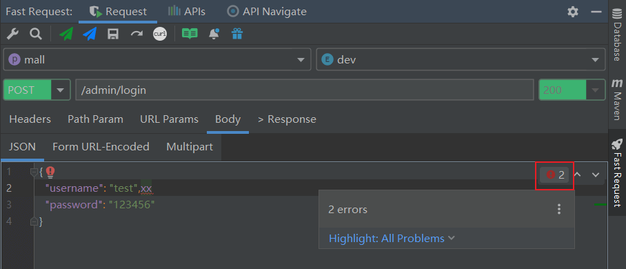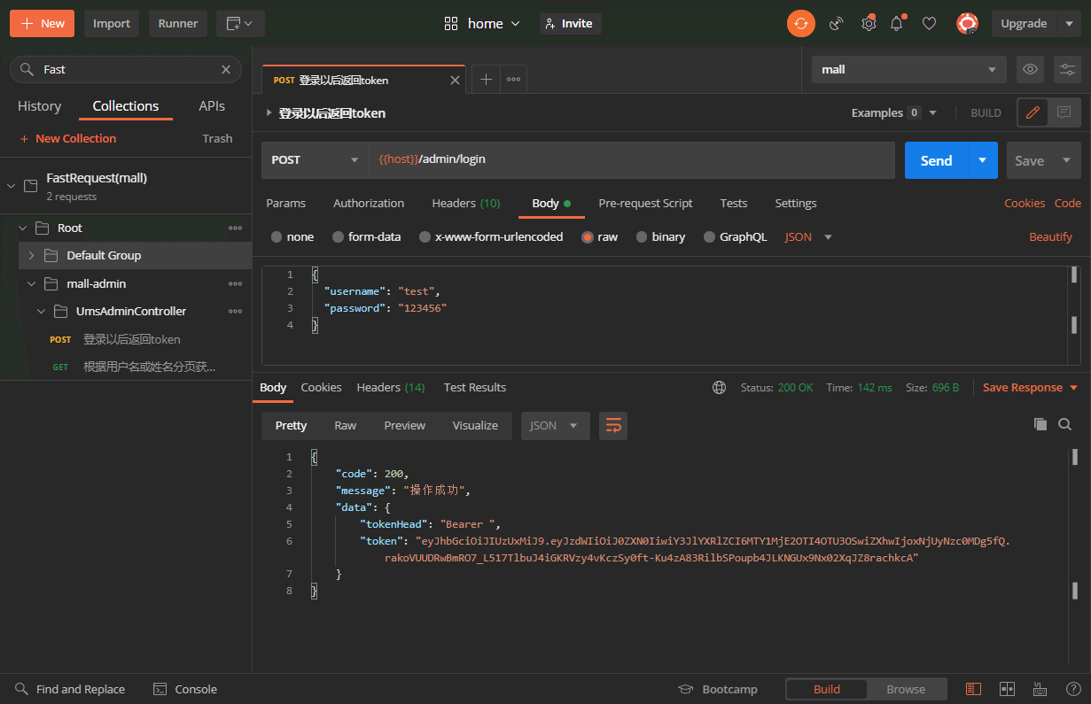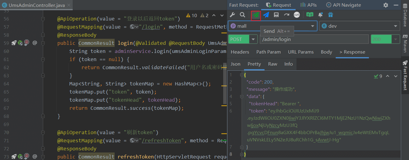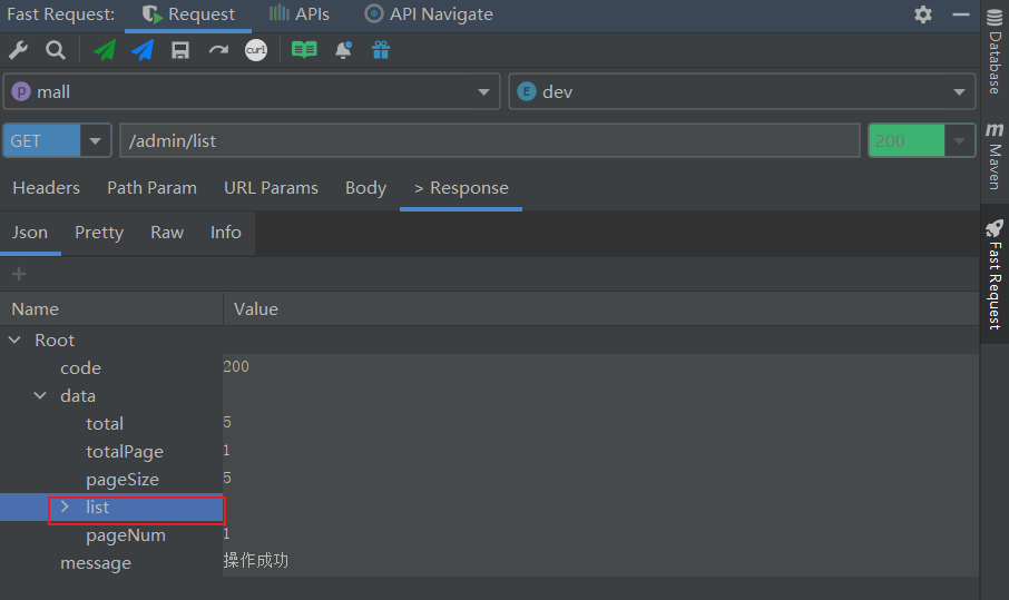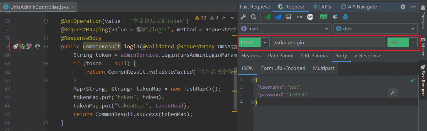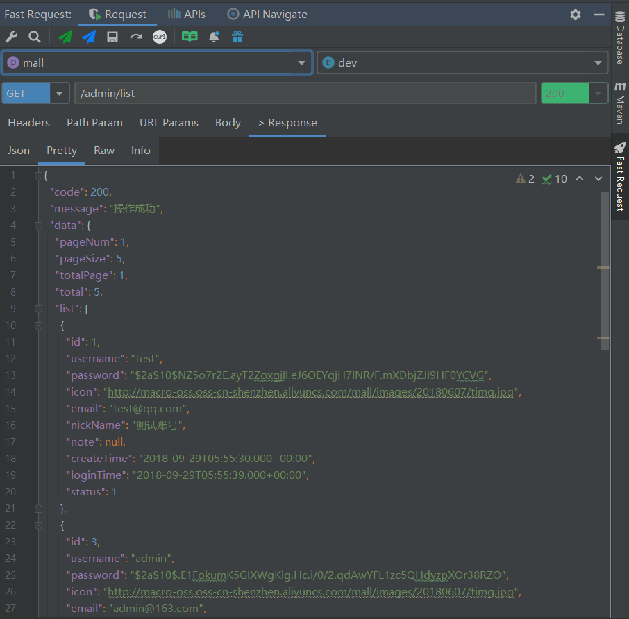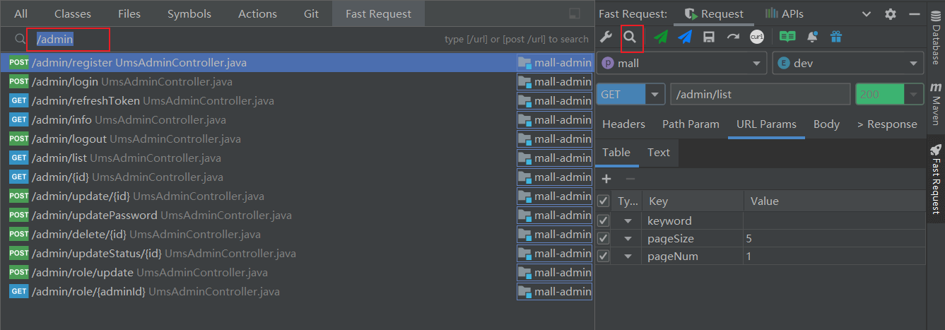 下面是使用RestfulFastRequest调试mall项目API接口的一张效果图,用起来还是非常方便的!
