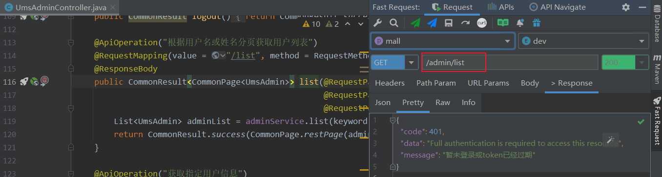 快速添加Header 学习过我的mall项目的朋友应该了解,项目中很多接口都是需要登录成功后才可以访问的,比如这个获取用户列表的接口;