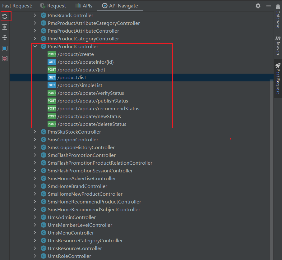 在API导航中可以查看所有接口,第一次需要点击刷新按钮加载。