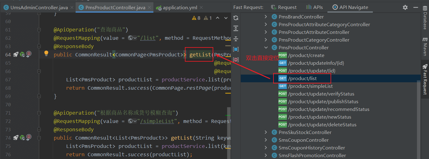 双击接口信息可以直接反向定位到代码,通过接口找代码又方便了!