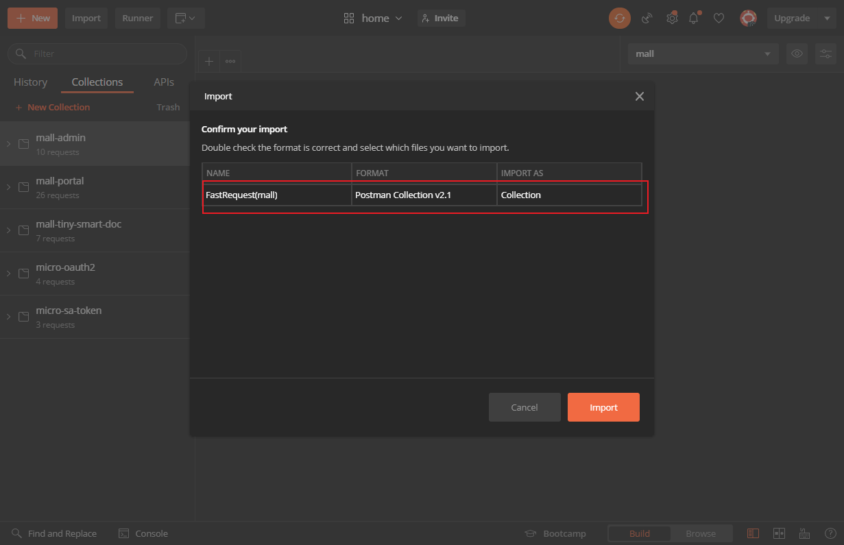 导出成功后,再在Postman中导入JSON配置文件即可使用;