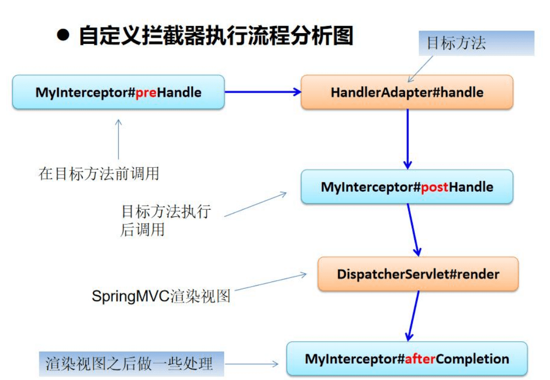 执行流程说明:拦截器的执行先后顺序根据配置的先后顺序执行