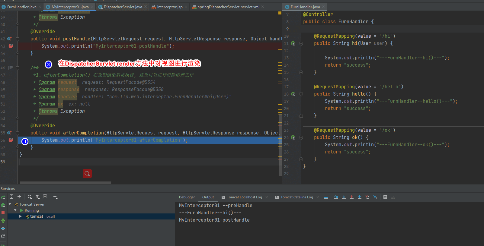- 若 preHandle 返回 true, 则 afterCompletion 方法 在渲染视图之后被执行.