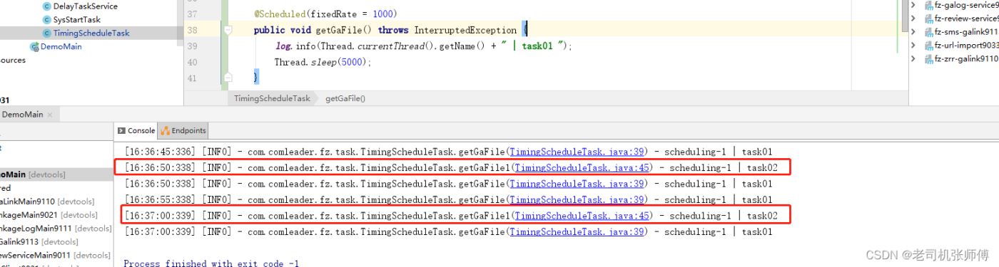 类似于以下模拟场景,test1定时任务模拟有五秒钟执行时间,这时会同步影响到test2任务的执行,导致test2任务也变成五秒执行一次。