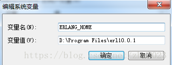 修改环境变量path,增加Erlang变量至path,%ERLANG_HOME%in;