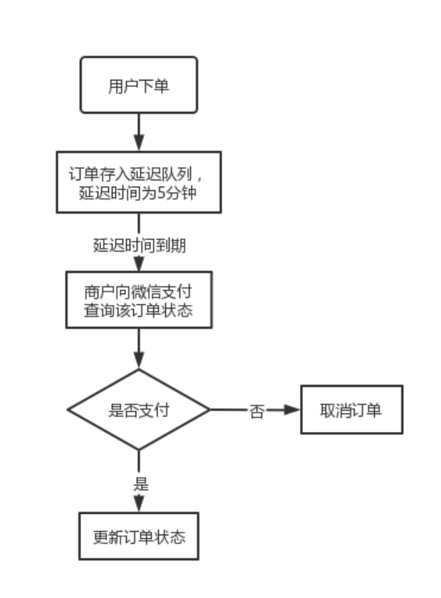 处理策略为商户下单之后生成订单存入数据库并将该订单号存入延迟队列,此时订单状态为“未支付”,假如接收微信回调成功并且验证到用户已付款,这时候就更新数据库中该订单状态为“已付款”。当延迟队列到期进行消费时,根据延迟队列中的订单号先在数据库中进行查询,假如这时候数据库中该订单状态为“已支付”,这时候就不需要进行处理,假如订单状态为“未支付”,商户程序应主动向微信支付后台进行订单状态查询,如果订单状态为已支付,这时候就不需要进行处理,如果订单状态为未支付,这时候就将订单状态改为“已取消”。一开始我的做法为无论数据库中该订单状态是否已支付都向微信支付后台进行订单状态查询,然后再根据查询结果做进一步处理,显然这种做法存在缺陷,就是每一笔订单都主动向微信支付后台进行查询会消耗很大的网络带宽,而且假如已经成功接收到微信支付回调通知的订单并不需要进行再次查询确认。