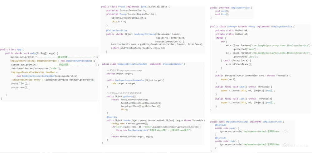 - 4>重写IEmployeeService接口的save list方法靠的是父类Proxy的h属性.invoke方法