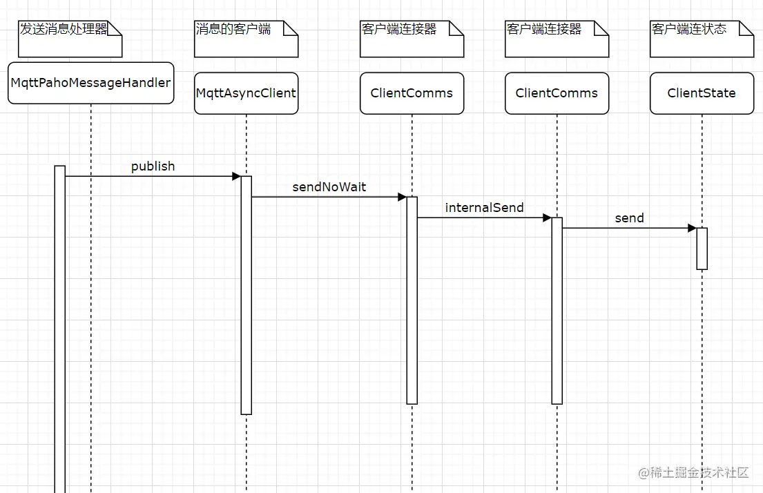 关于源码的阅读我们需要整理主线思路,MQTT发送消息主线分为消息push到缓存中和异步发送两部分。