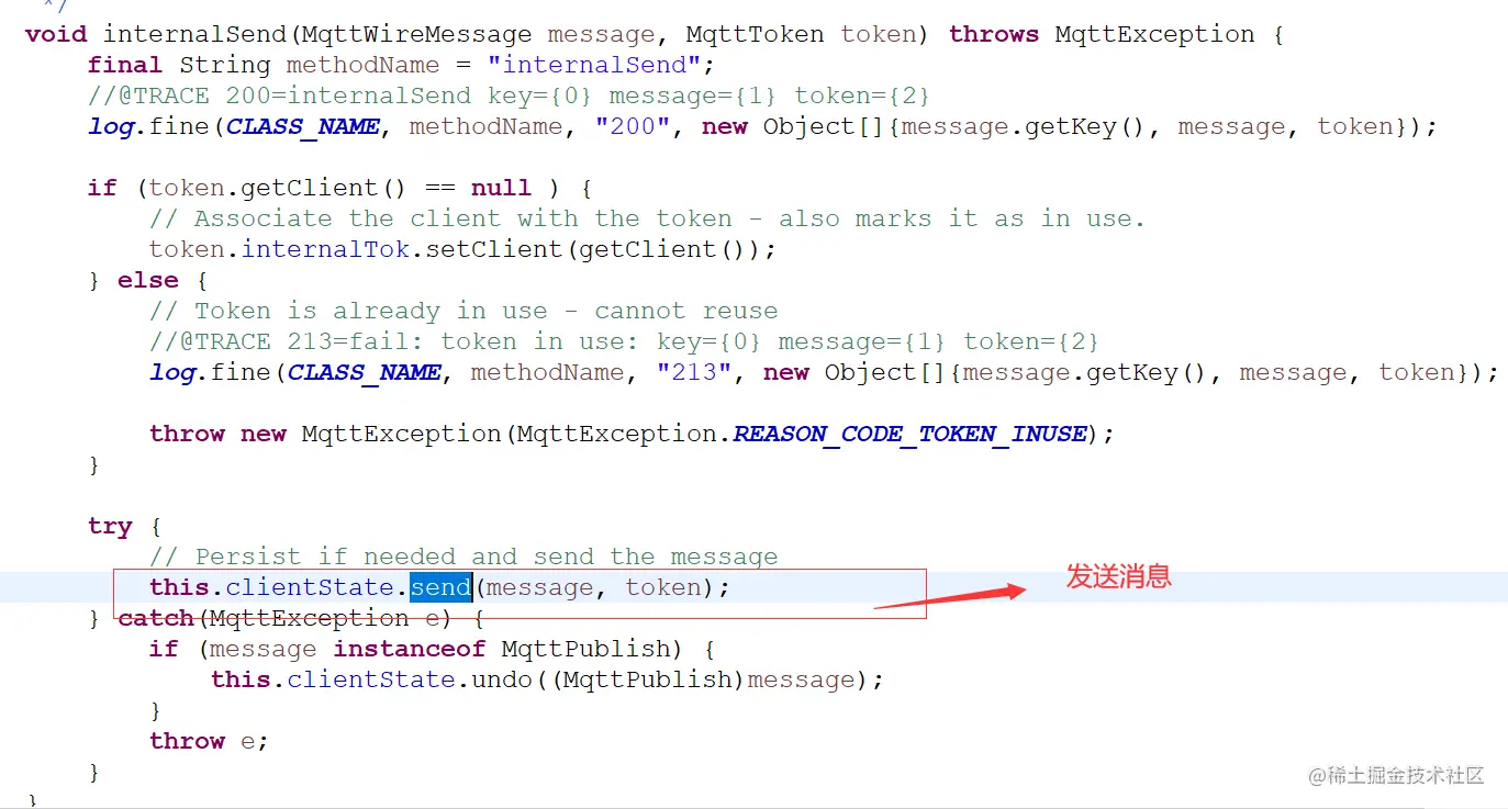 ClientComms的internalSend方法