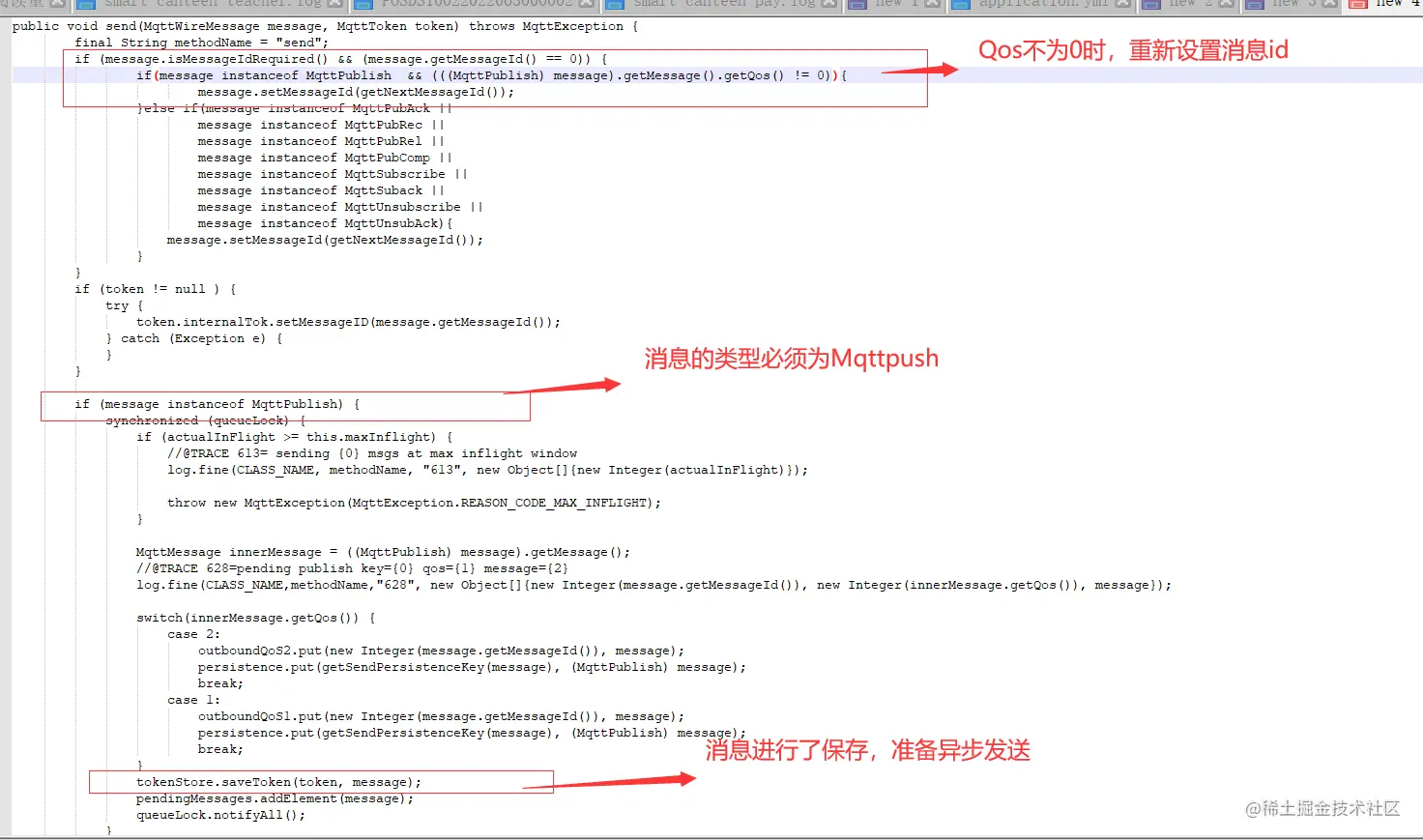 项目中使用了MQTT发送消息的地方比较多,且一般都是以Qos为0,那么为什么Qos为0,在并发量比较大的情况下就会出现Too many publishesin progress(32202)的错误,报错的内容的源码如下: