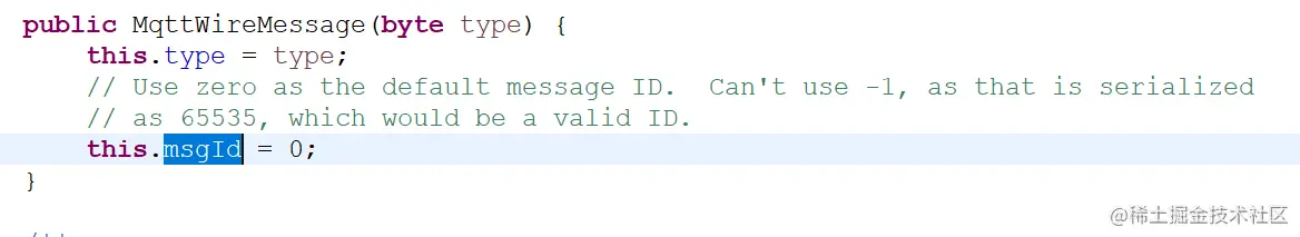 MqttPublish消息类型,继承了父类MqttWireMessage,而在MqttWireMessage的构造方法中将消息id设置为0