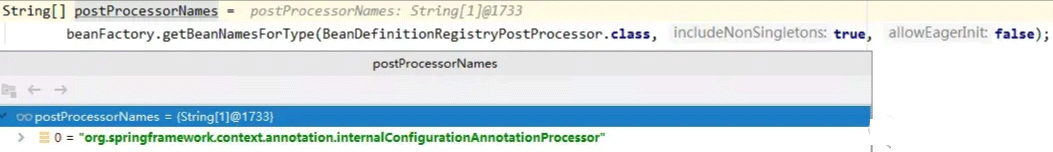 String[] postProcessorNames = beanFactory.getBeanNamesForType(BeanPostProcessor.class, true, false);