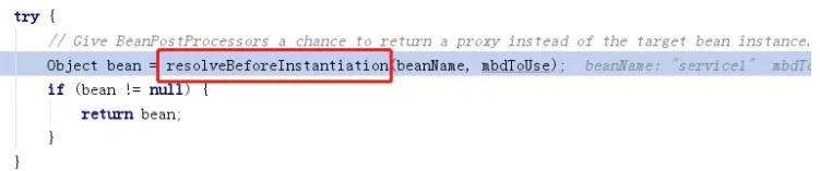 如果这里返回了null,就按照正常的流程创建对象,交给spring去负责对象的实例化。因此这个方法可以判断这个对象在spring实例化之前是否要做特殊的处理,比如不交给Spring管理,自己使用代理产生。