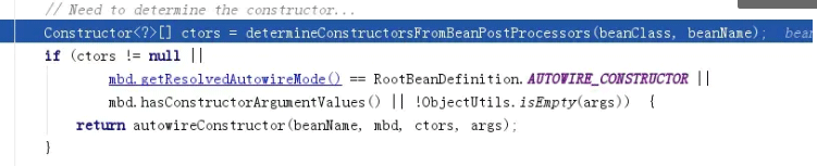 determineConstructorsFromBeanPostProcessors方法,该方法用于推断实例化的构造方法,这里可能检测出bean拥有多个候选构造方法: