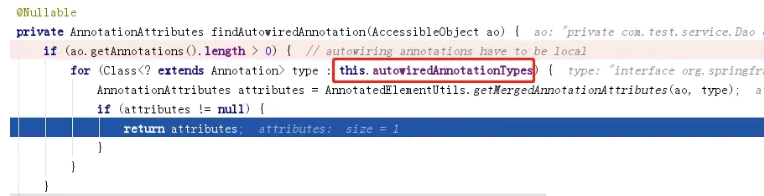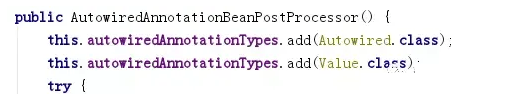 AutowiredAnnotationBeanPostProcessor中,定义了两种需要扫描的注解类型,@Autowired和@Value