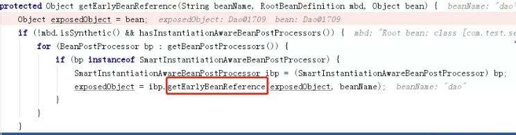 在产生循环依赖后调用getEarlyBeanReference方法: