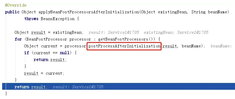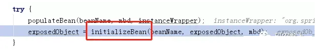 在执行该方法前,bean已经被实例化完成,并且完成了属性的填充,因此这个过程属于后续的bean的初始化过程。