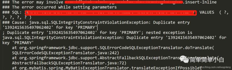目前项目使用的id是mybatis-plus 内置的主键生成策略 ID_WORKER ,最近测试在做性能压测,部署架构是单服务集群的部署方式,然后就发现了id重复的异常,异常如下