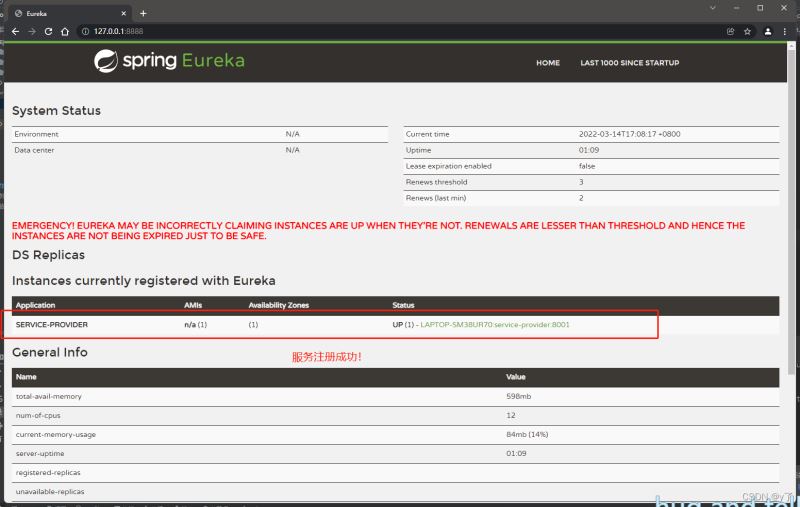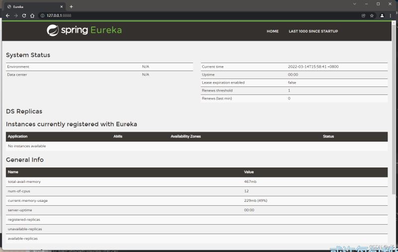 启动成功后,访问本地+端口即可看到注册中心页面,说明成功啦!