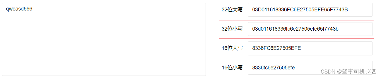 知道其解密原理之后,我们尝试一下复杂点的密码看看能不能“解密”出来,首先对密码“qweasd666”进行加密: