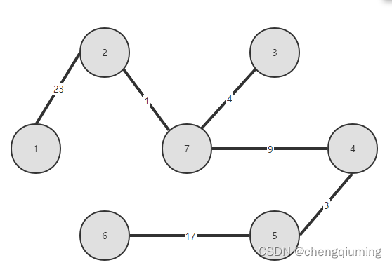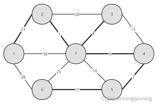 按照上面步骤,最终可以得到一棵权值之和最小的生成树。