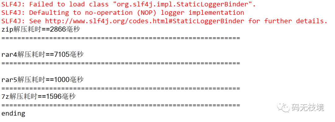 System.out.println("rar4解压耗时==" + (rar4end - rar4start)+ "毫秒");