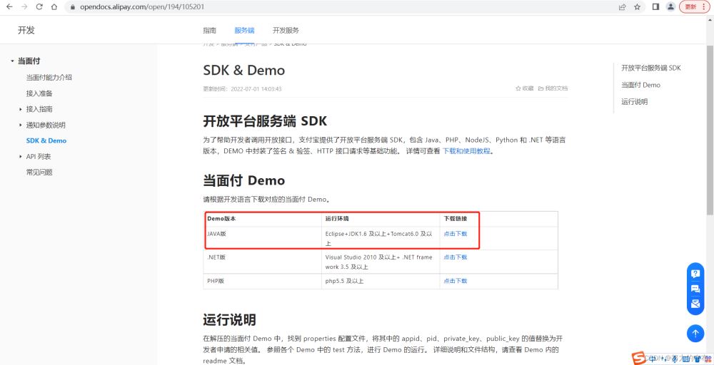 支付宝文档中心支付应用SDK&&DEMO下载代码demo,用来在本地加以调试就行。