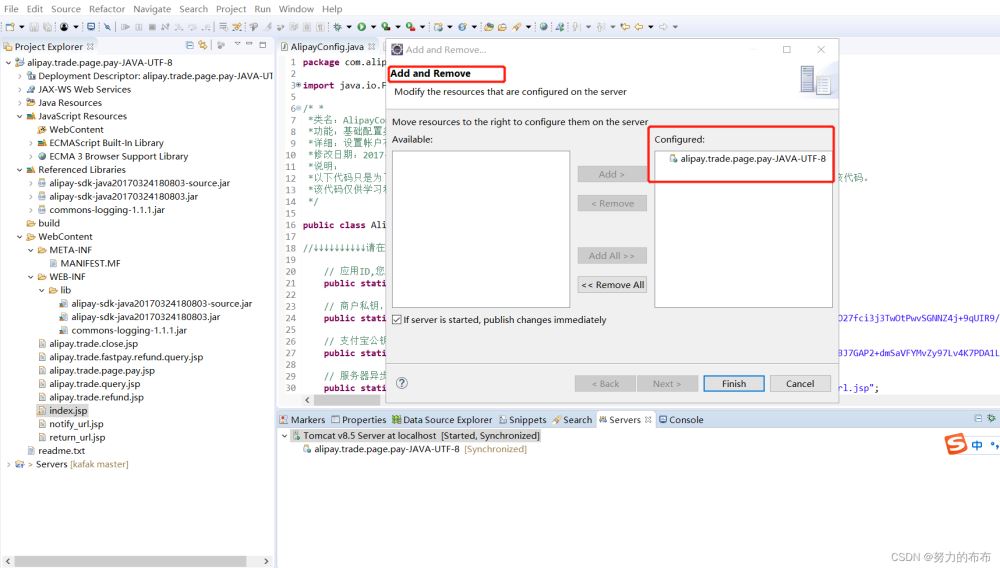 AlipayConfig文件主要是配置,APPID,私钥等这些信息,具体配置参考下文