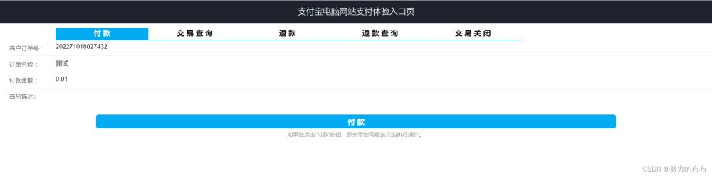 点击付款触发访问alipay.trade.page.pay.jsp在这个jsp页面调用支付接口