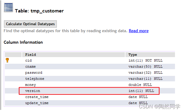 - 步骤一:修改表结构,添加version字段