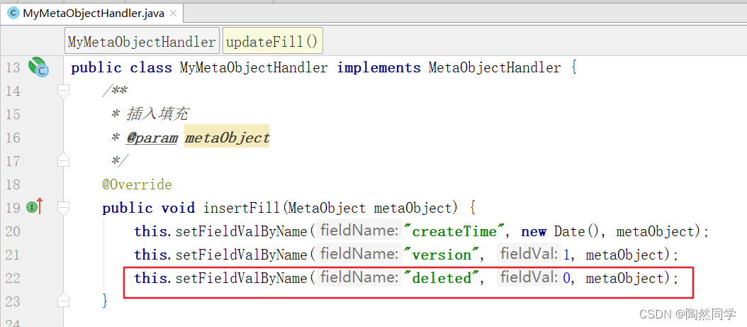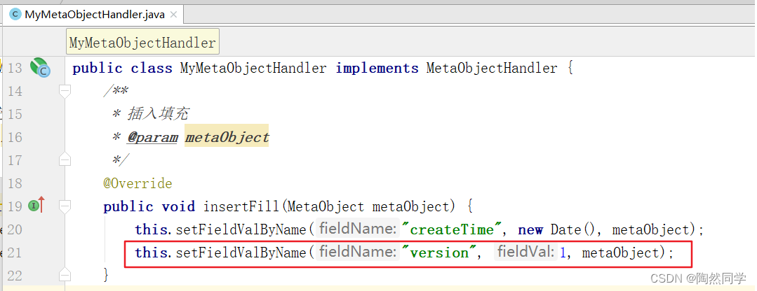 public class MyMetaObjectHandler implements MetaObjectHandler {