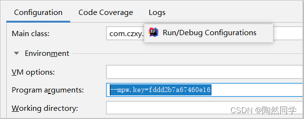 // Jar 启动参数( idea 设置 Program arguments , 服务器可以设置为启动环境变量 )