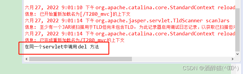 展示效果:(当自己点击列表删除时,出现了“在同一个servlet中调用 del 方法”这效果,说明用xml建模的知识去优化中央控制器成功!)
