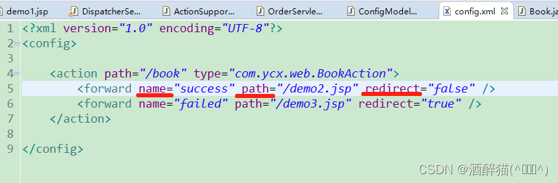4、通过返回值在进入到config文件找到path属性,之后在中央控制器中进行判断,来决定是重定向还是转发。