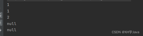 默认是小堆,所以堆顶元素是1,获取到1,在删除1,剩余元素个数为两个,当队列为空的时候,这两个方法都返回null