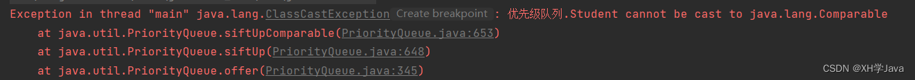 PriorityQueue中存放的元素必须能比较大小,不能比较大小的对象不能插入,会抛出ClassCastException异常