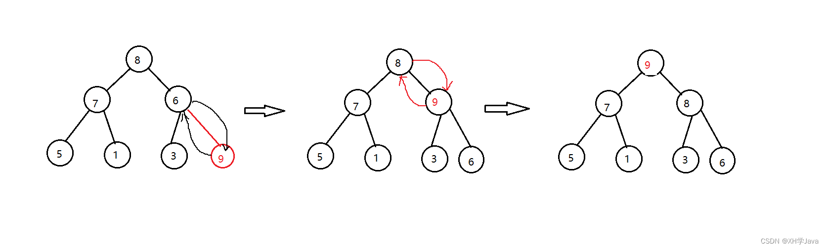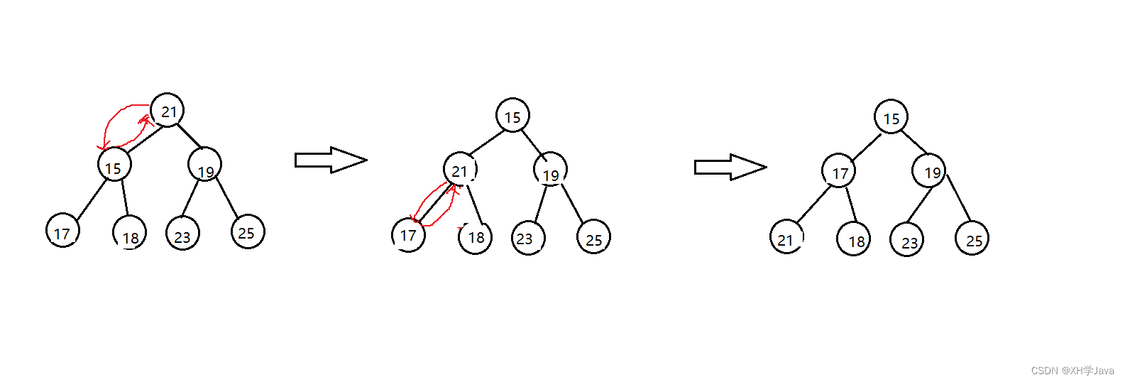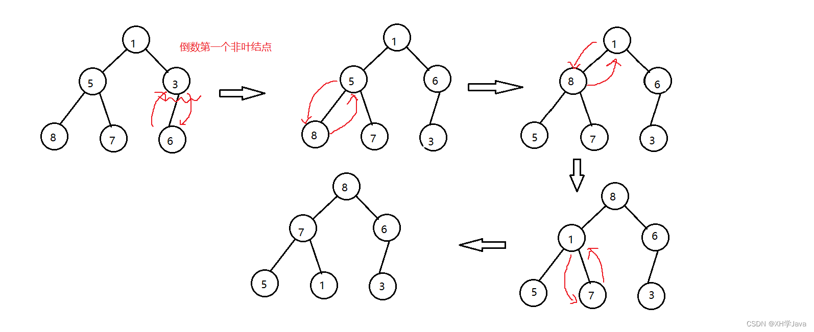 - 交换堆顶与堆最后一个元素的位置