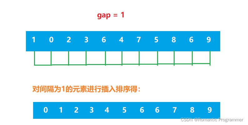 当gap>1时都是预排序,目的是让数组元素接近有序,当gap==1时,数组已经接近有序了,这样插入排序将会很快,整体而言,达到了优化的效果。