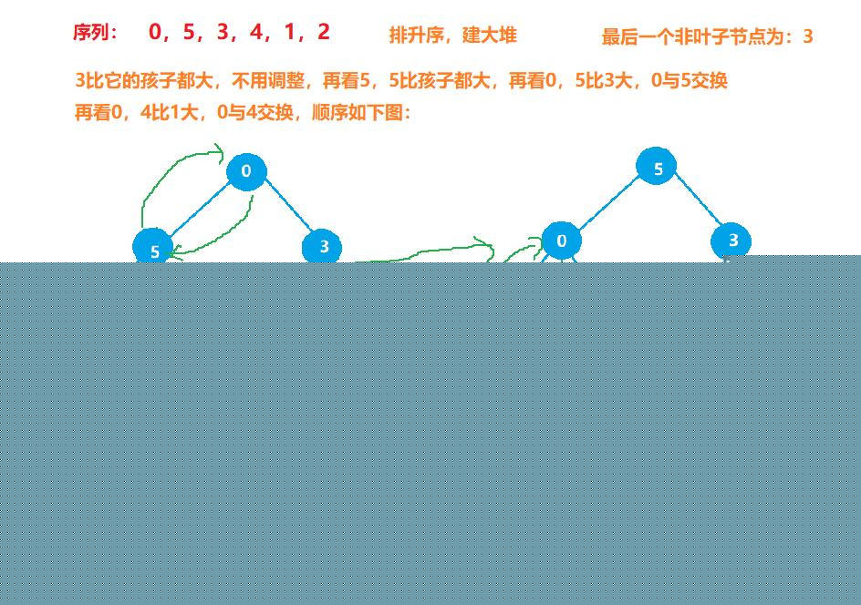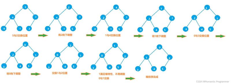 说明:先找到序列的最大元素与序列最后一个元素交换,序列的最后的位置朝前移一个,再找新序列的最大元素再与最后一个交换位置,依次循环。