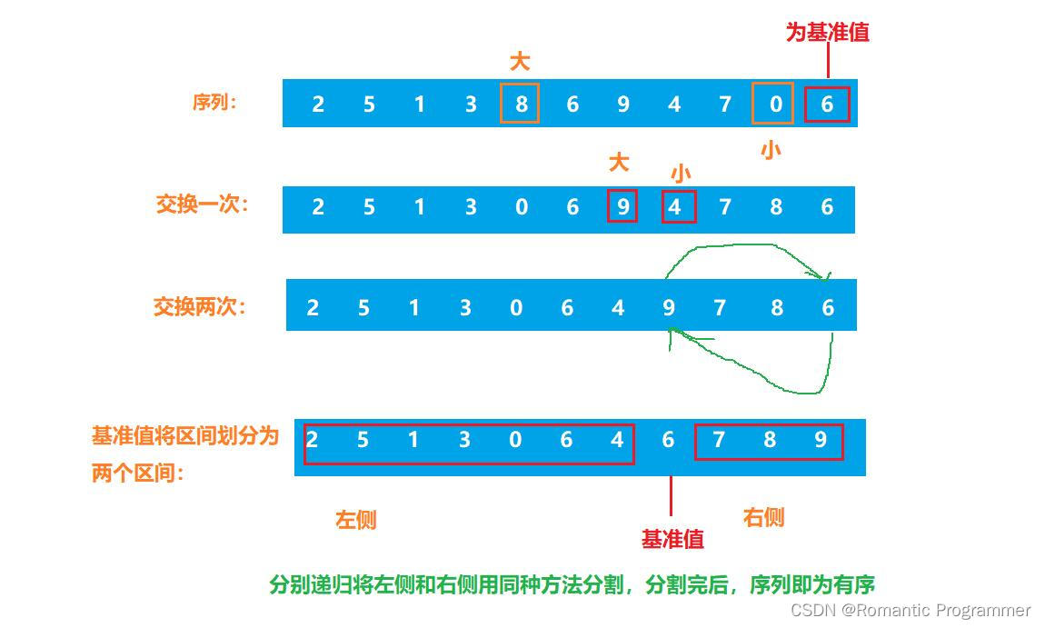 注意:以下的排序默认排升序。默认待排序列为:2,5,1,3,8,6,9,4,7,0,6