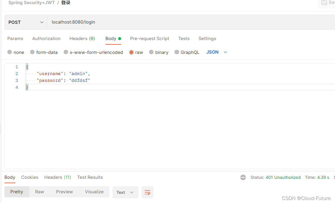 使用错误的密码,会返回401 Unauthorized的状态码,表示我们认证失败!