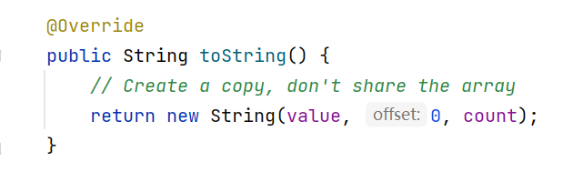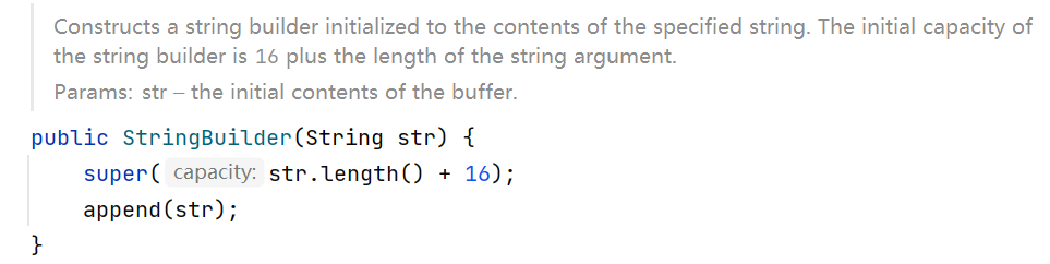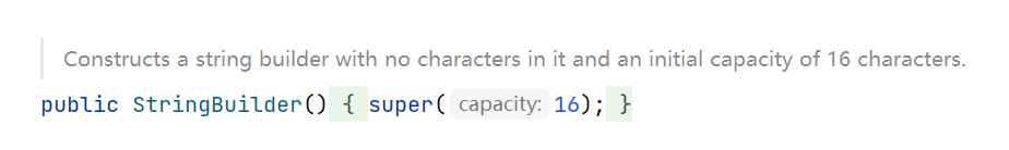 //创建Builder对象时,底层的数组大小实际为输入的字符串长度个数+16