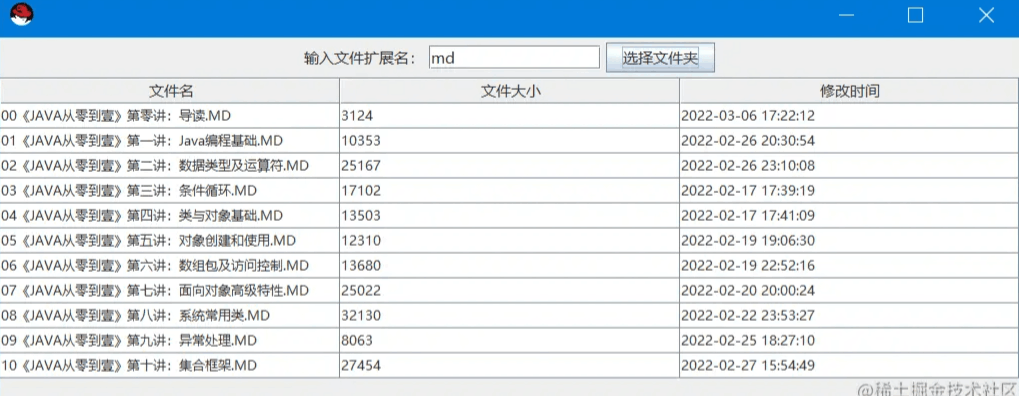 题目:在操作系统中,通过文件的扩展名来区别不同类型的文件 。实现根据用户输入的扩展名,列出指定文件夹内该类型文件的文件名,文件大小和修改时间。
