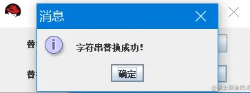 JOptionPane.showMessageDialog(this, "字符串替换成功!");