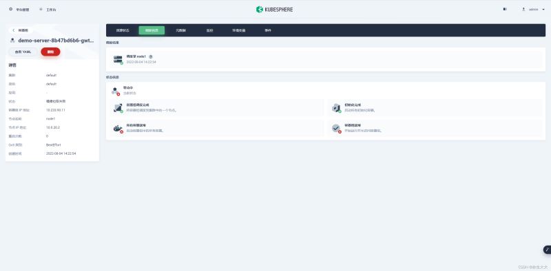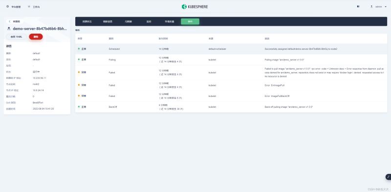 再使用命令:kubectl describe pod demo-server-8b47bd6b6-8bh5q查看pod详情里的pod IP