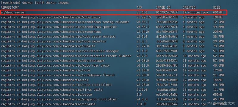 an/demo_server就是要打包的容器镜像名称,我们下面的配置k8s也是以此名称来找镜像进行调度的。